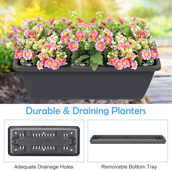 - 【Intimate Drainage System】: Each plastic planter bin consists of a few drainage holes and a removable bottom tray, which helps a lot to improve water drainage and prevent water logging. An efficient drainage system is of vital importance for growing plants.
