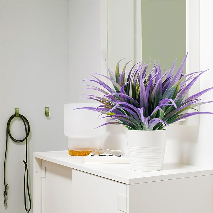 8Pcs Artificial Grass Plant Fake Outdoor Plastic Plants UV Resistant Faux Grasses Greenery Shrubs for Window Box Garden Patio Porch Home Decor Light Purple