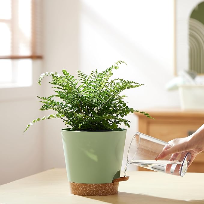 - 【Innovative Self Watering Design】- Our flower pots are equipped with detachable deep trays that can store a large amount of water, enough to supply plants with water for up to 14 days, keeping your plants well fed and hydrated. You don't have to worry about your plants drying up when you are away on a business trip or traveling.