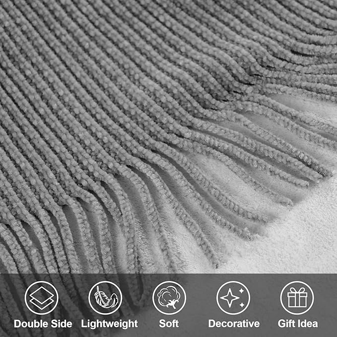 Blagic Grey Throw Blanket for Couch Soft Farmhouse Chenille Boho Throw Blanket with Tassels Home Decorative Lightweight Throw Blankets, Throws for Bed/Chair/Sofa, Stripe Textured (Light Grey,50"x60")