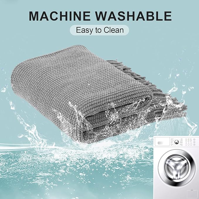 - 【SUPER SOFT & COZY】 Our throw blankets made of 100% high-quality chenille fabric are ultra silky soft and cozy. The lightweight blanket is fluffy, warm and strong resistance to sunlight, which measures 50" x 60" and weights 750g (1.65 pounds).