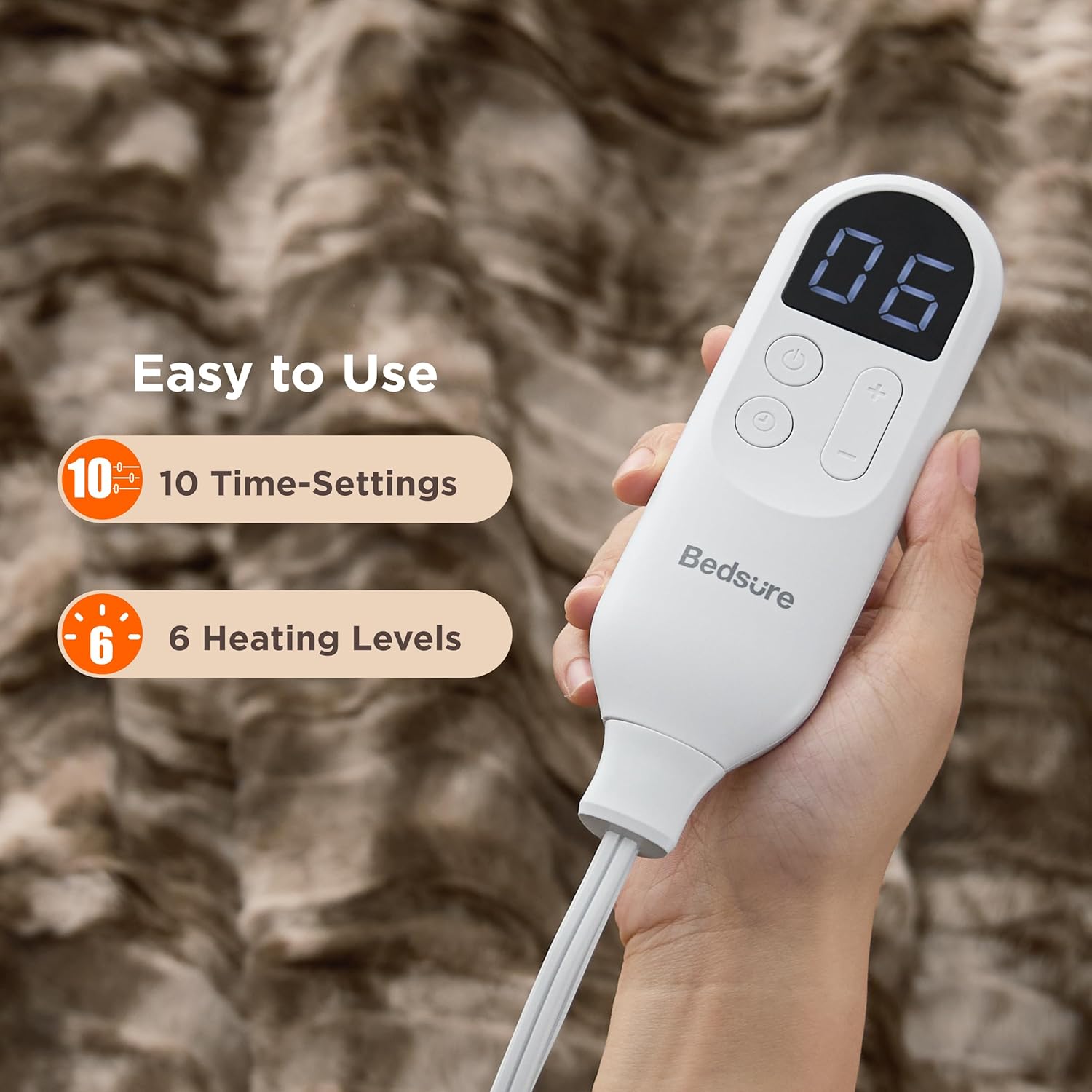 Bedsure Faux Fur Heated Blanket Twin Size, Fast Heating Electric Blanket Twin Size with 6 Heating Levels & 10 Time Settings, Cozy Gifts for Women Men (62x84 inches, Dark Chocolate)