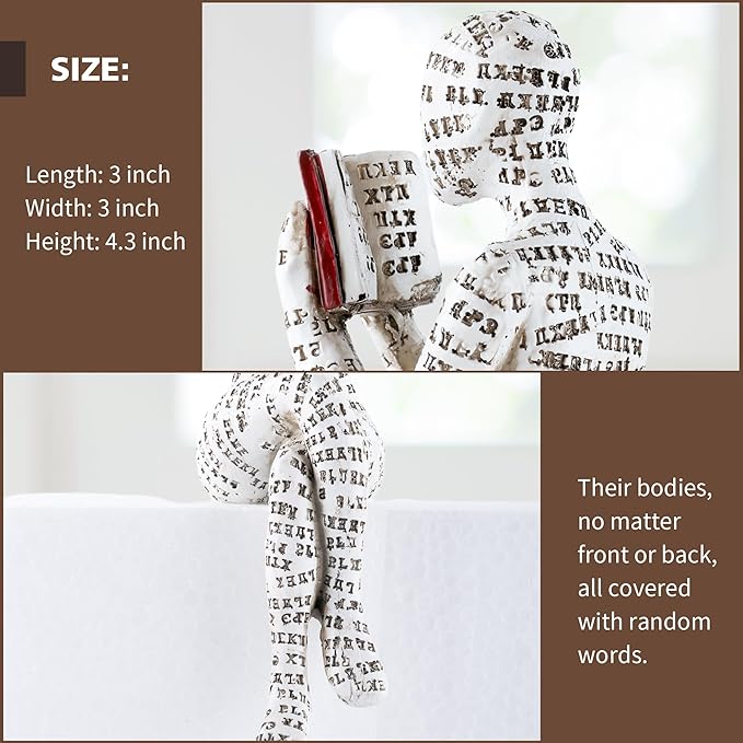 - [AESTHETIC DECOR] The reading women statue will be a special decor in your dining room or living room,office or bedroom, espacially fits on shelf and table. This sculpture looks like a woman reading a book. It is worth mentioning that this woman is covered with letters, which more intuitively shows the beauty and power of intellectual women.