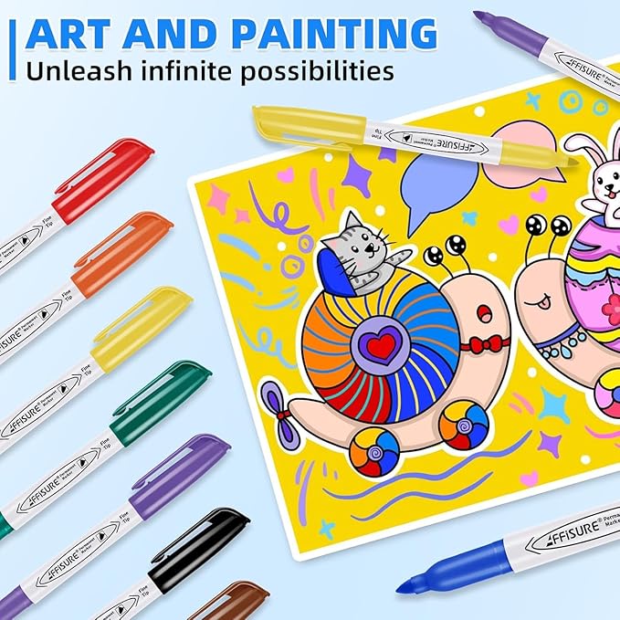 - 【MULTI-COLOR PERMANENT MARKER USE RANGE】——Color permanent marker allows creativity beyond "paper" and helps children imagine enlightenment, suitable for fine point permanent markers of plastic, glass, metal, wood, stone and other materials.