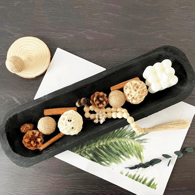 Wooden Dough Bowl Decor, Vintage Wooden Bowl Hand Carved Home Decor for Dining Table Center, Living Room, Kitchen Decor. (20inch black)