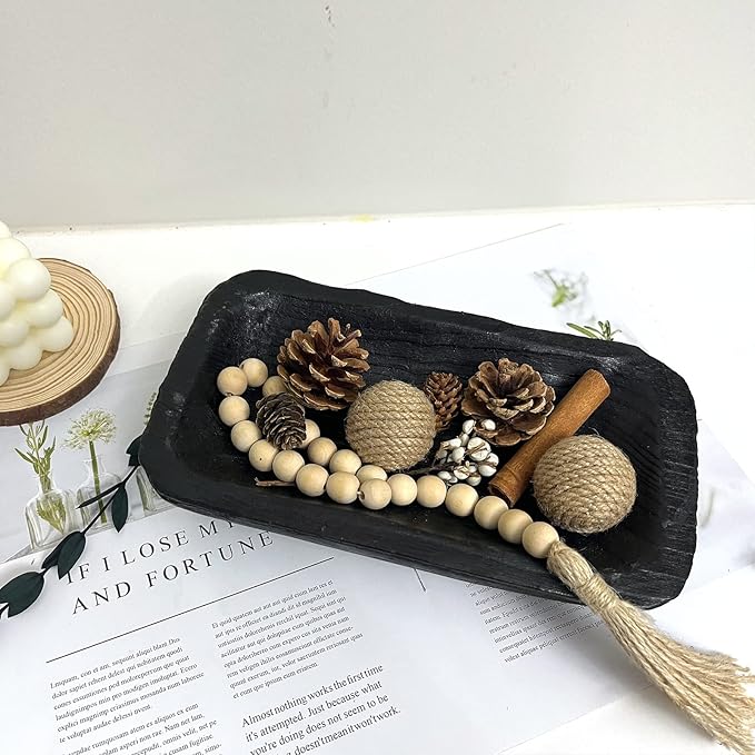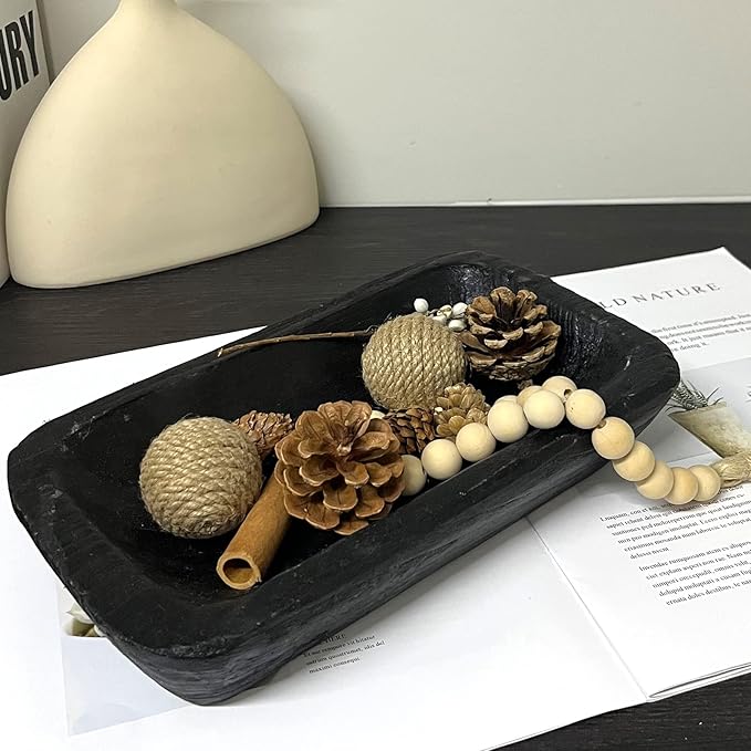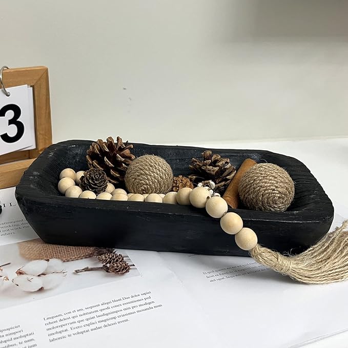 Wooden Dough Bowl Decor, Vintage Wooden Bowl Hand Carved Home Decor for Dining Table Center, Living Room, Kitchen Decor. (10inch black)