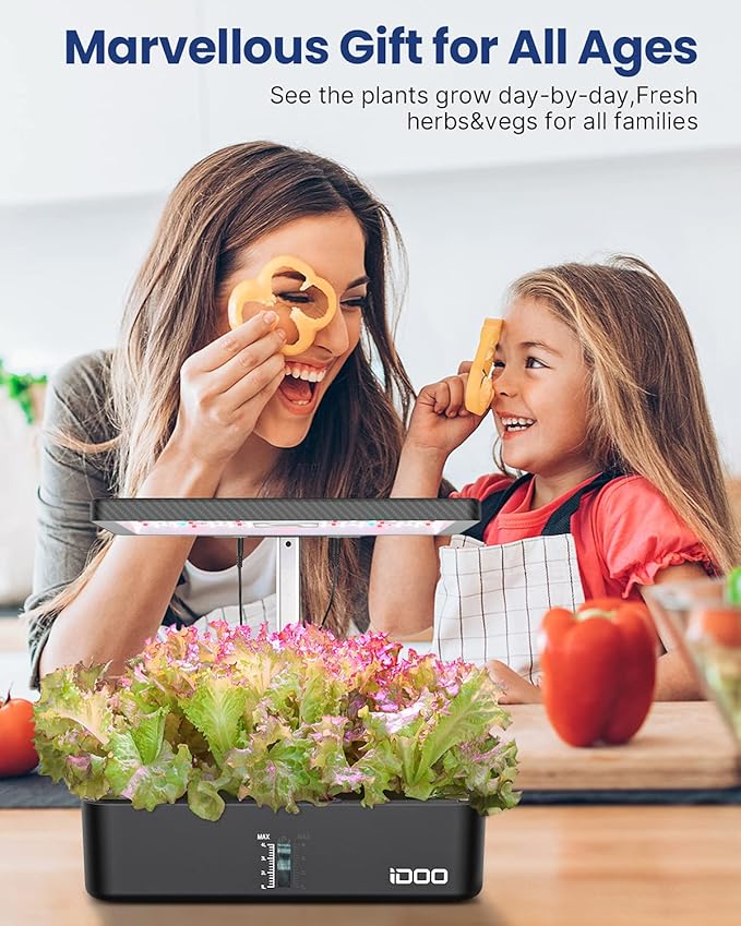 iDOO Hydroponics Growing System Kit 12Pods, Christmas Gifts for Women Mom, Herb Garden Indoor with LED Grow Light for Home, Built-in Fan, Auto-Timer, Adjustable Height Up to 11.3", 12Pods Kit-Black