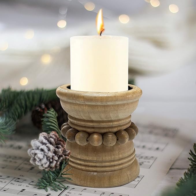 - High-quality materials: This candle holders for pillar candles is crafted from 100% pine wood with solid wood beaded , the rustic candle pillar holder is built to last and add a touch of elegance to any setting.