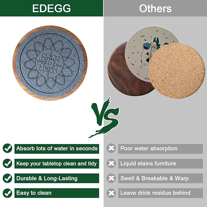 - 🍻Super Absorbent Coasters: Cup coasters with built-in thickened felt pads for stronger water absorption and heat insulation, capture liquids quickly were prevented any spills, keeping your tabletop clean and tidy, with no stains and water rings; extra large size easily accommodates cups of all sizes.