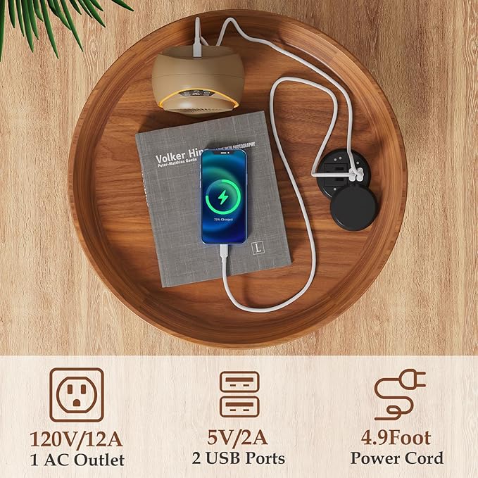 - 【Charging Is Super Easy】 Equipped with 2 USB ports, 1 AC outlet, and 4.9 ft long power supply cord. Imagine plugging in your lamp, phone or watch before sleep, power is just within your reach, then be happy to greet the morning with fully charged necessities