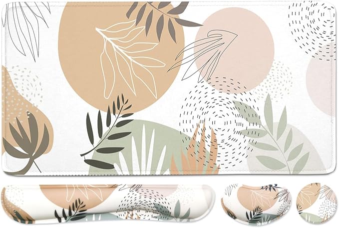 - 【Large and Extended Size】: large desk pad:35.4×15.75 inch, keyboard wrist rest measures 17.32" x 3.15" x 0.98" , Mouse wrist rest measures 5.4" x 3.15" x 0.98". Extended desk pad which is large enough to fit a full-sized keyboard and mouse, providing plenty of space for gaming or office work, and keeping a clean, uncluttered desk.