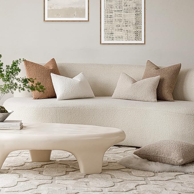 Foindtower Pack of 2 Textured Boucle Throw Pillow Covers Accent Solid Lumbar Pillow Cases Cozy Soft Decorative Couch Cushion Case for Chair Sofa Bedroom Living Room Home Decor, 12 x 20 Inch,Beige
