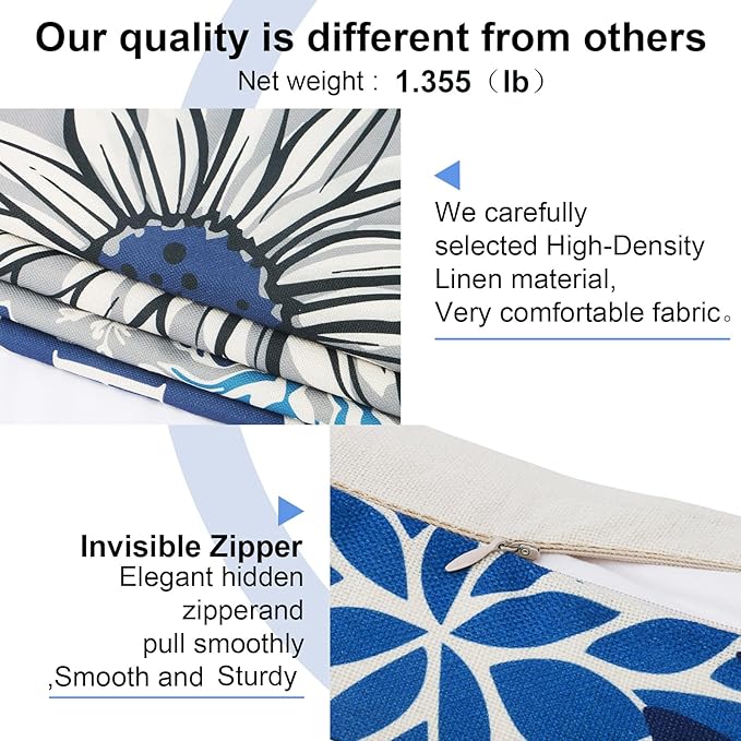 Decorative Throw Pillow Covers Set of 4 Blue Pillow Covers 22x22 inch Throw Pillow Cases Linen Square Pillow Case,Farmhouse Outdoor Modern Boho Pillow Covers for Couch Sofa Living Room