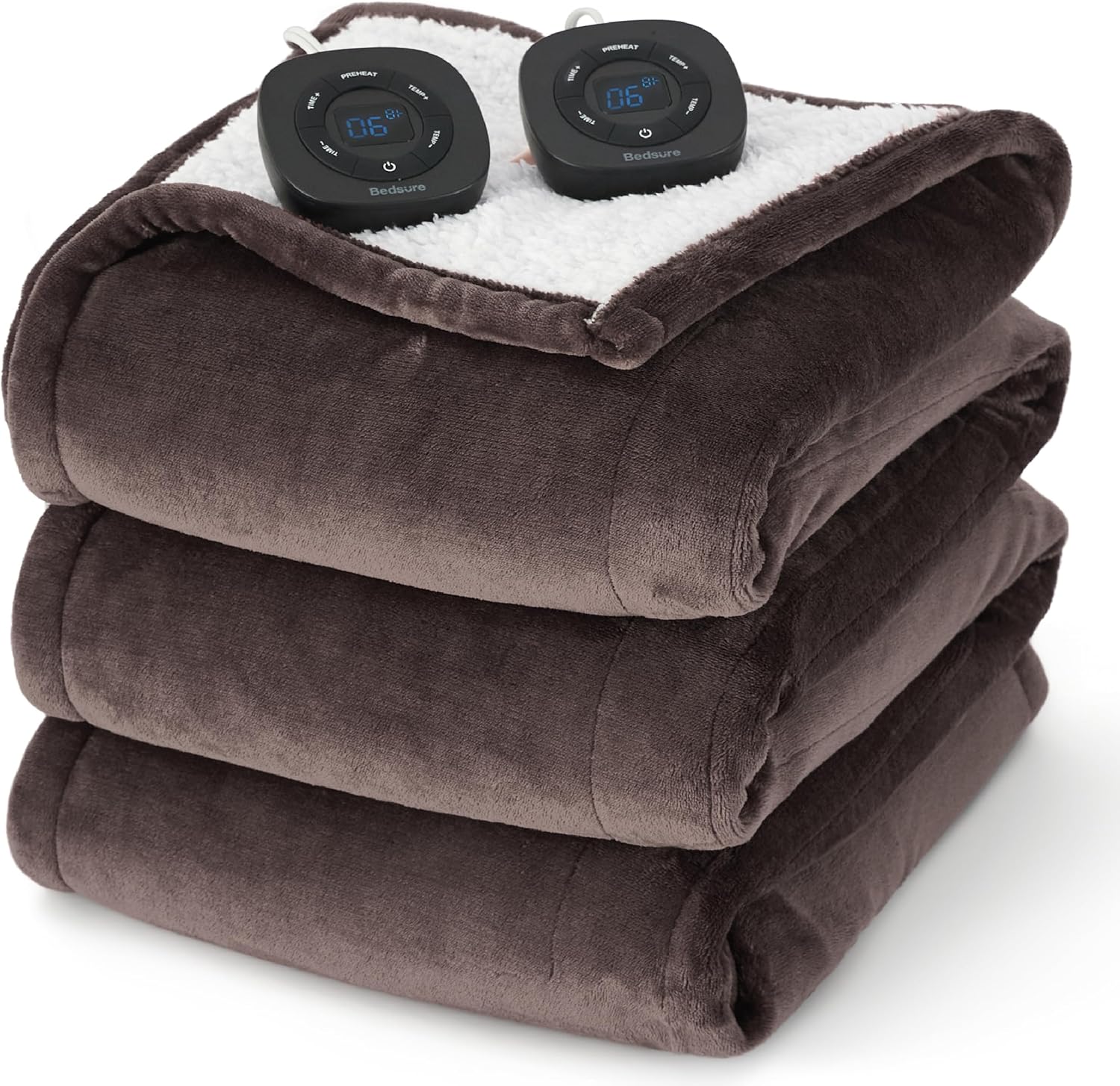 Bedsure Electric Blanket Queen Size - Dual Control Heated Blanket Queen, Fast Heating with 10 Time Settings & 10 Heat Settings, Warm Gift for Grandma (84x90 inches, Brown)