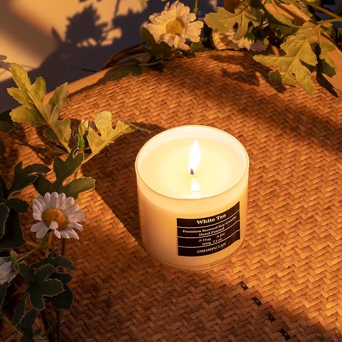 Chloefu LAN White Tea Candles Gifts for Men & Women, Highly Scented, 7.1oz|45 Hour Burning, Candles for Home Scented, Home Decor, Glass Jar Candle with Gift Box