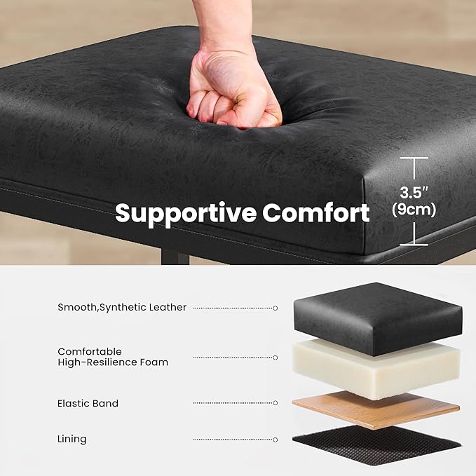 - Sturdy and Durable: Crafted with a strong metal frame and premium fabric/leather upholstery, our bar stools are built to withstand daily use and resist wear and tear.The solid premium metal frame provides stability and durability, while the cushioned seat provides comfort during extended use. Maximum load: 330 pounds.