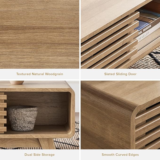 mopio Ensley Coffee Table with Storage, Mid Century Modern, Farmhouse Wood Coffee Table for Living Room Fluted (Oak)