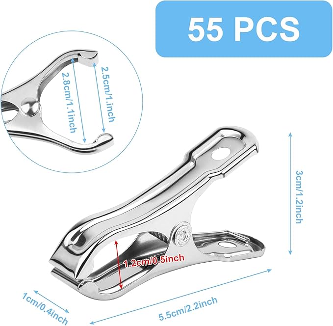 JULMELON Garden Clips, 55 PCS Stainless Steel Greenhouse Clamps Heavy Duty Greenhouse Clips Hoops with Large Open Strong Grip for Shade Cloth or Plant Cover Netting