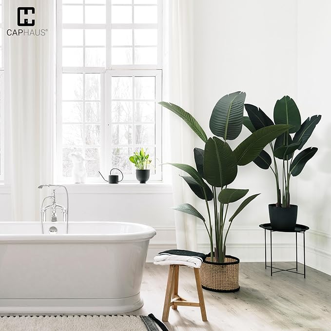 - 🌱 Living with green - Overall Product Dimensions: 10 Lifelike Trunks, Standing 5 Feet, 60 Inch from a planter (included in height) ; Planter Dimensions: H: 5.1 Inch. W: 5.9 Inch. Designed to look like a real bird of paradise tree, with high-quality, realistic plastic leaves that are crafted with great attention to detail to ensure that they look and feel just like real leaves.