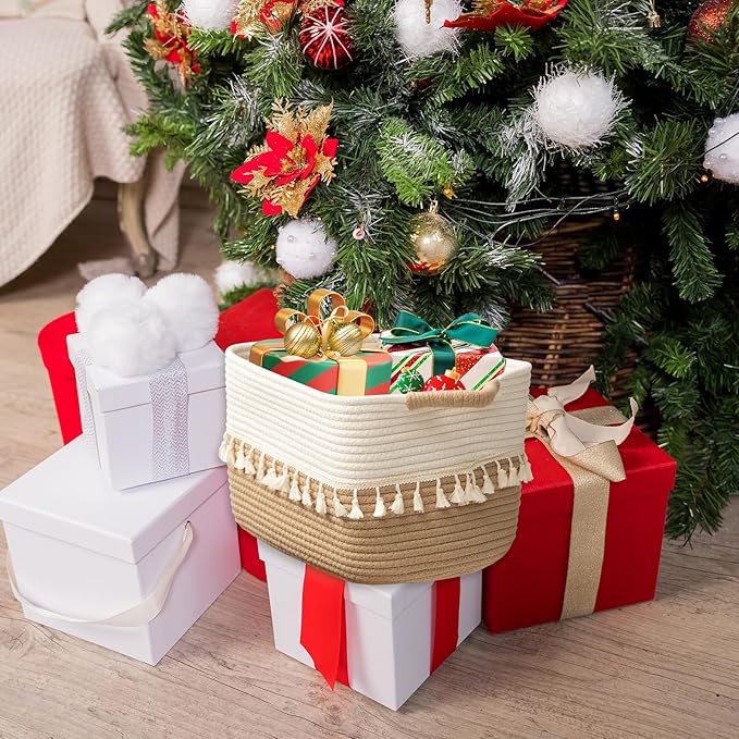 - Thoughtful gift idea: Our woven storage basket are soft, flexible, and durable, with a unique tassel design that sets them apart from the rest. It’s a thoughtful gift for friends and family. The fabric storage are packaged nicely and ready to be gifted