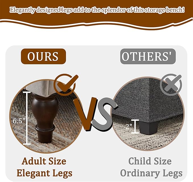 - Sophisticated Appearance: This storage ottoman designed in modern ottoman style, premium velvet, vintage stool legs and rolled arms look elegant. Blending modern design with luxurious glamour, performing perfectly in your home