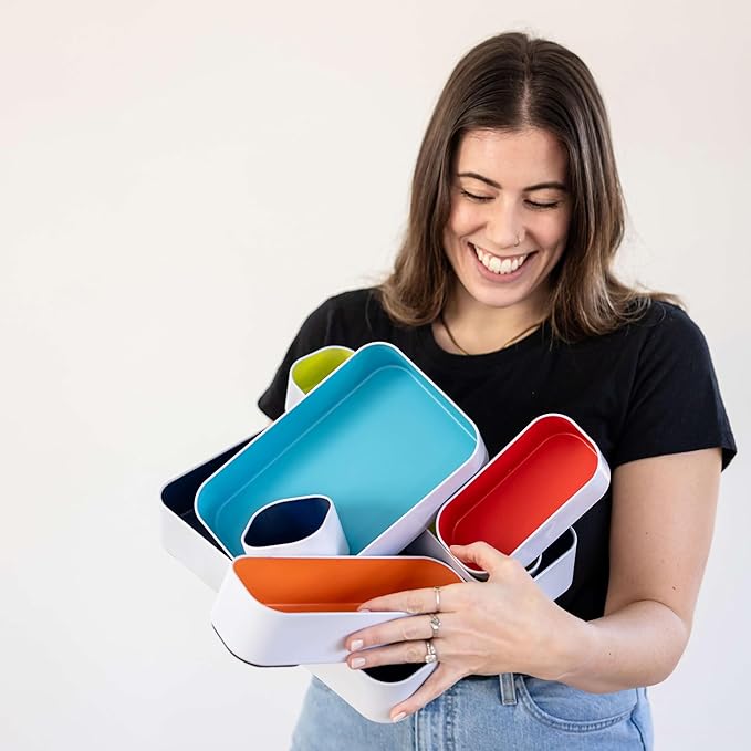 - BOLD DESIGN: Our trays have colorful interiors and bold patterns allowing you to color code your items while adding a stylish pop of color to your drawers, pantry, vanity, and office desk tops