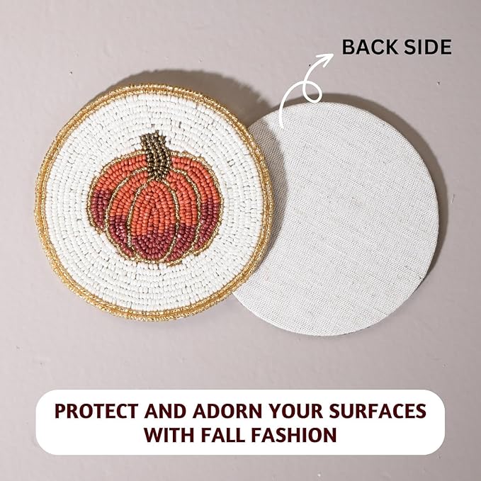 - [ WASH CARE - Hand Wash ] - Handle this fall coaster set with care due its intricate glass bead detailing. Wipe with a damp cloth only to clean. Hassle free fall decorations option that doubles as cozy home decor or vintage fall decor during gatherings.