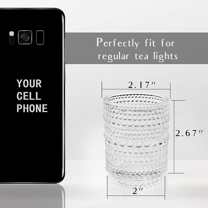 - Versatile Size Compatibility: Designed with dimensions of 2"D x 2.67"H, these glass tealight candle holders are made to fit most candles effortlessly. Whether you prefer votives, tealights, or small LED lights, our holders are up for the task