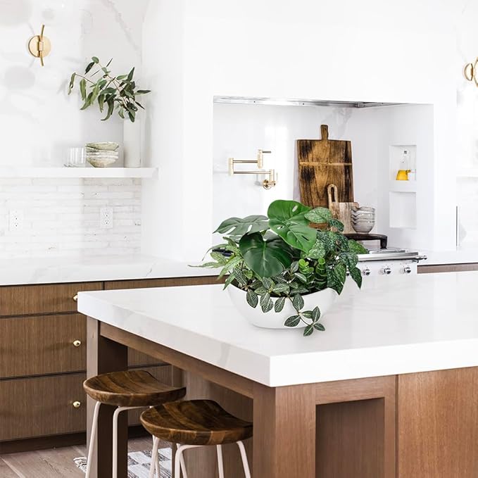 - [Faux Plants Indoor] -Faux potted plant is perfect to display on a bedroom, living room, bathroom, kitchen, table, office, balcony and any other place to infuse your space with a refreshing and natural ambiance. This silk plant also makes a great gift for housewarming parties, weddings, and holidays.