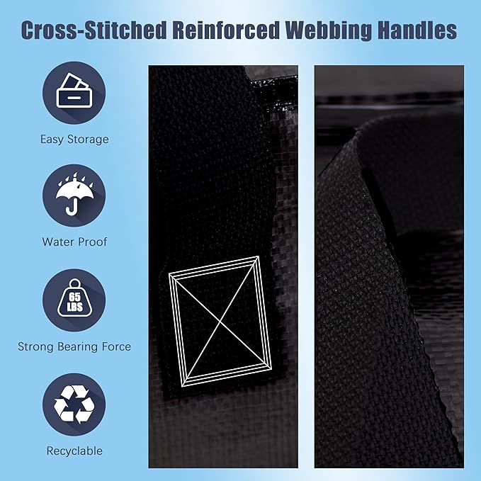 12 Pack Large Strong Moving Bags with Zippers & Carrying Handles - Water-Resistant - Heavy Duty Storage Tote for Space Saving Moving Storage, Fold Flat, Alternative to Moving Box (Black)