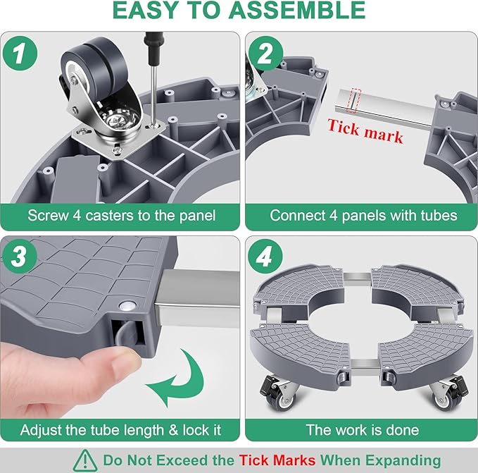 - Easy to Assemble: Package contains an instruction, 8 casters, 8 panels, 8 connecting tubes, a screwdriver & some screws. Follow the instructions to install the casters, connect the panel, and fix the buckle, the assembly of the plant caddy can be completed quickly (FYI: an electric screwdriver making the assembly more convenient)