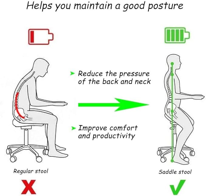 - Ergonomic :This saddle stool chair design for extra comfort on your back and spine,this design reduces painful pressure on your back.