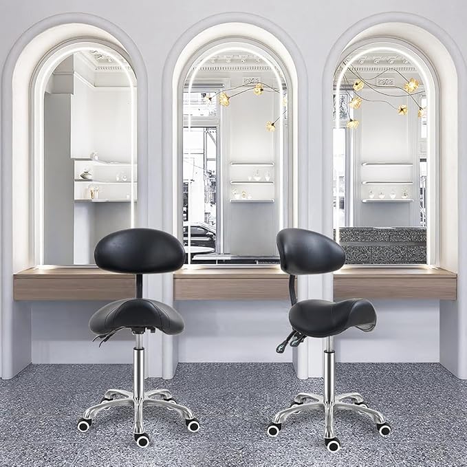 - Rotation : The cushions and wheels on this saddle swivel stool enable unrestricted rotation, allowing for easy movement throughout the room. This saddle chair is ideal for use in various spaces, including kitchen, living room, offices, clinic, salon, and more.
