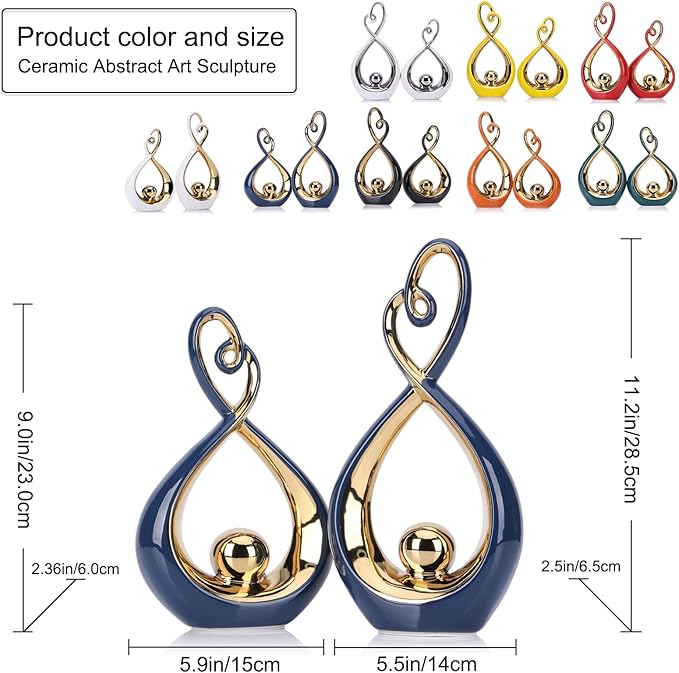 - 【Elegant art decoration】When light shines on the statue, its surface reflects a unique effect, adding dynamism and charm to your space. Whether in the living room, bedroom, study, or office, this navy blue Gold ceramic abstract sculpture becomes the captivating focal point. Its exquisite design and colors make it an irresistible piece of art and decor, instantly elevating your space with an elegant fusion of artistry.