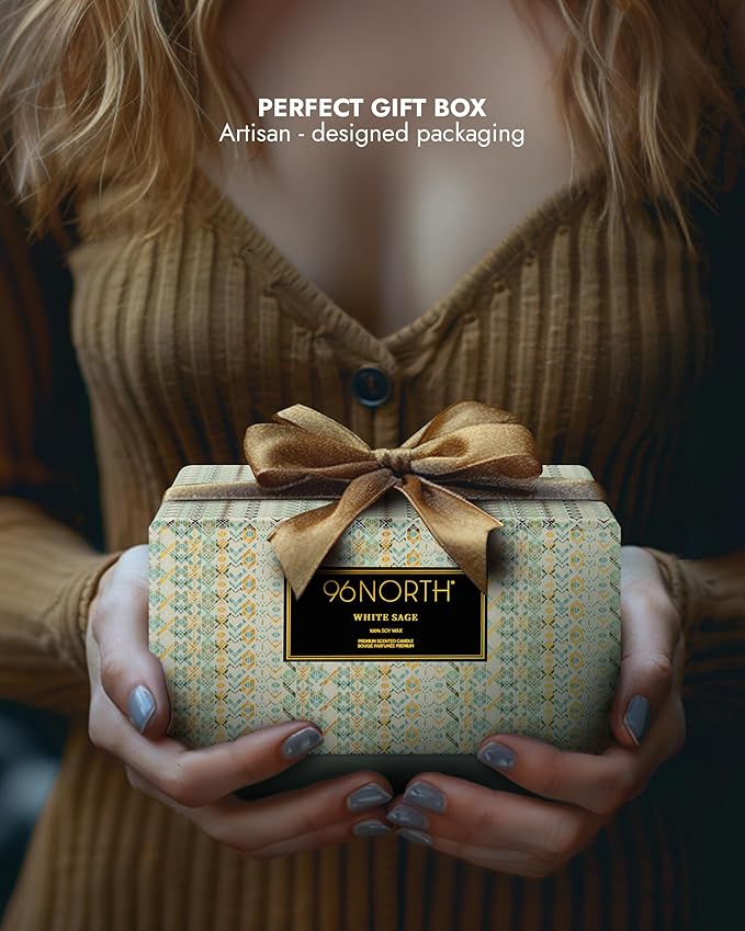 96NORTH Luxury White Sage Candle | Large 3 Wick Jar Candle | Up to 50 Hours Burning Time | 100% Natural Soy Wax | Relaxing Aromatherapy Aesthetic Candles | Housewarming Gift for Men and Women