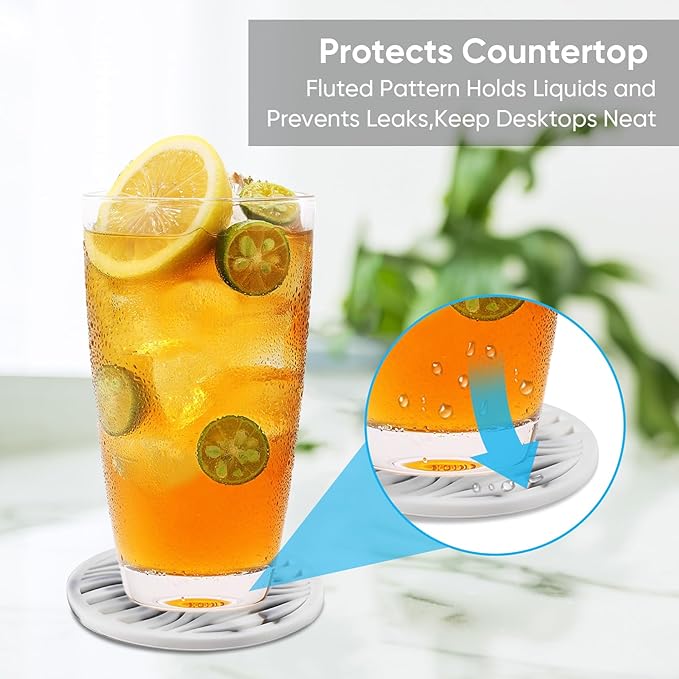 - NON-SLIP & NON-STICK:Drinks coasters are double sided design,one side has a groove pattern to contain spilled liquids and prevent them from sticking to glasses or bottles,the other side is designed with a special non-slip surface to keep glasses from moving around.