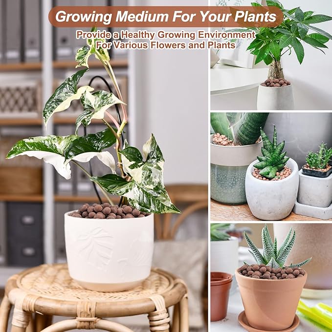 - Natural and Organic Leca Balls: Our organic clay pebbles are made of natural clay baked at high temperatures, which is lighter than soil, not easily damaged, and has a neutral PH value. Expanded clay aggregate smells odorless and less dusty, which Keeps plants growing well