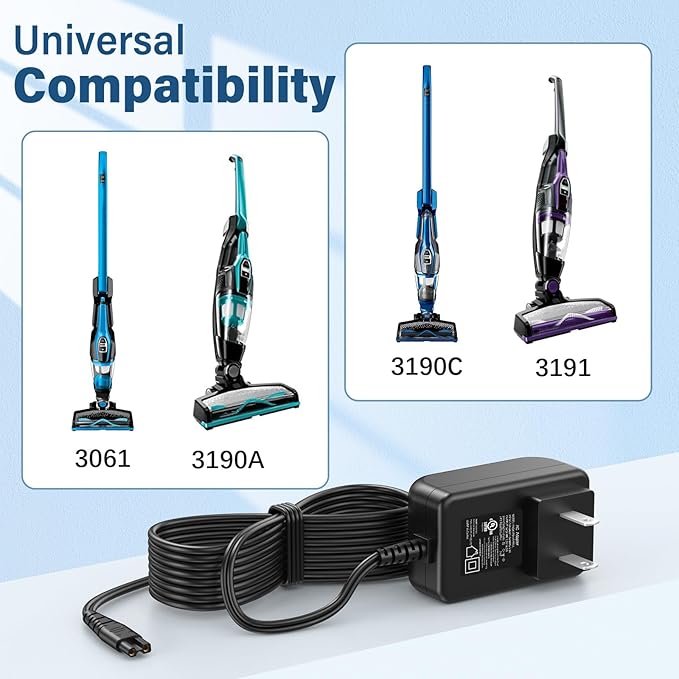 - Compatible Models For Bissell Charger: The UL listed Charger for Bissell 3061 featherweight cordless stick vacuum cleaner is Only compatible with Bissell 3061 3191 3190 3191C 3190A 31902 vacuum cleaner; compatible with Bissell ReadyClean cordless stick vac 3190A; fits for Bissell PowerLifter Ion Pet cordless stick vacuum 3191. (Not fit for Bissell other models). Pls make sure that your devices complies with the above listing models