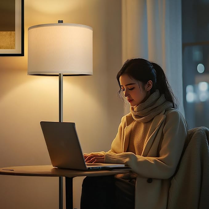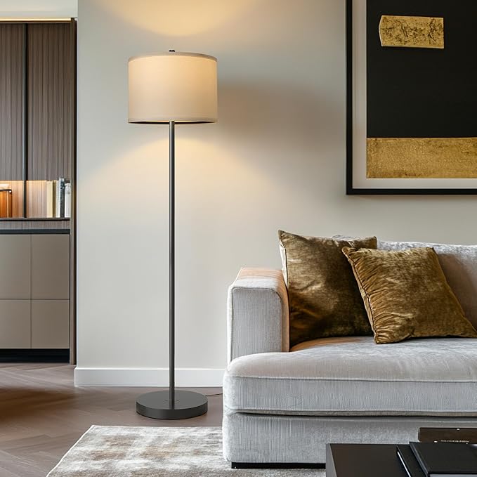 - Elegant & Industrial Design: Black standing lamp ,metal material, White Linen Lamp shade,The gorgeous industrial floor lamp is highly suited for any decoration style, such as modern, vintage, minimalist and so on.