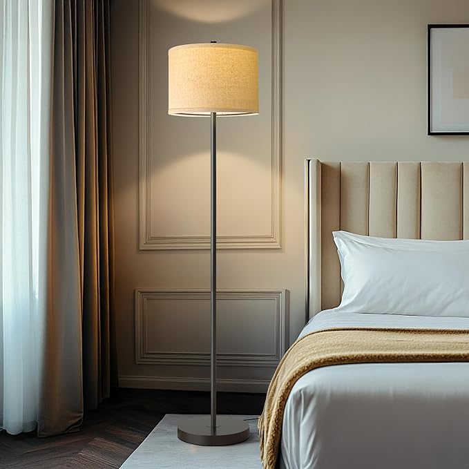- Perfect for modern home decoration: Natural Linen Lamp shade with black pole, The tall lamp helps to brightened up the room and the lamp has simple design that matches perfectly with furniture. This room light has rotary switch to turn it on and off. Convenient and great overall design!