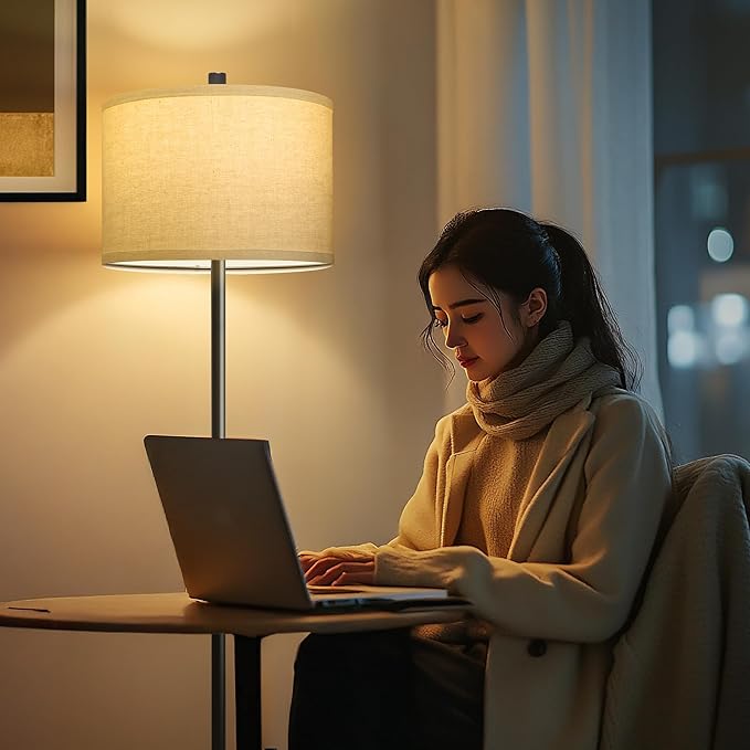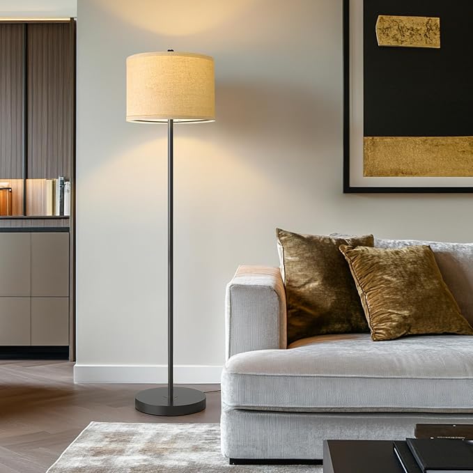 - Elegant & Industrial Design: Black standing lamp ,metal material, Natural Linen Lamp shade,The gorgeous industrial floor lamp is highly suited for any decoration style, such as modern, vintage, minimalist and so on.