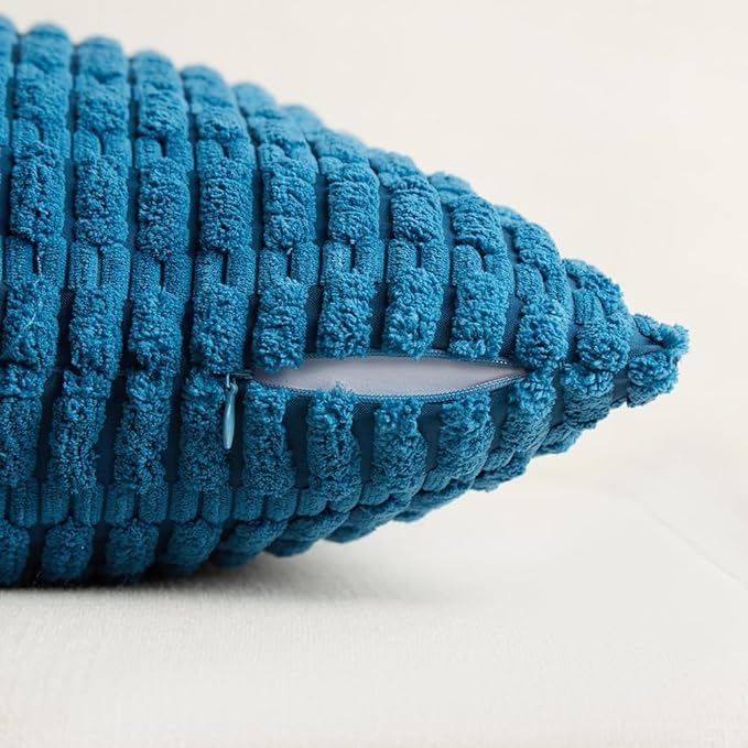Fancy Homi 2 Packs Teal Decorative Throw Pillow Covers 20x20 Inch for Living Room Couch Bed Sofa, Rustic Farmhouse Boho Home Decor, Soft Striped Corduroy Square Cushion Case 50x50 cm