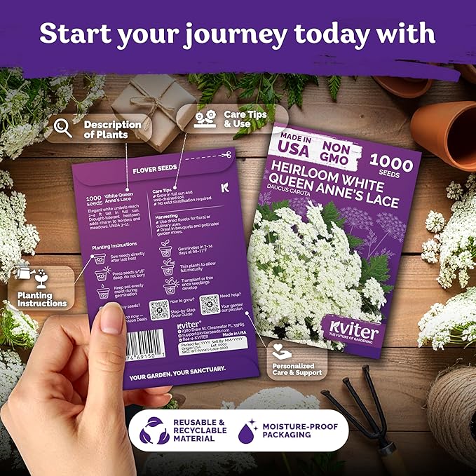 - Eco-Friendly: Sow queen annes lace seeds in early spring and every 4 weeks until midsummer for steady blooms; attracts butterflies, bees & hummingbird, reseeds politely, and suits any flower garden.