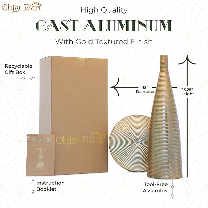 - UNIQUE HOME DECOR Made from high quality cast aluminum, our metallically accented side tables are handcrafted by skilled artisans. Along with its excellent resistance to corrosion, it has an antique gold finish that's sure to set you and your home apart. This accent table is lovely and distinctive by design.