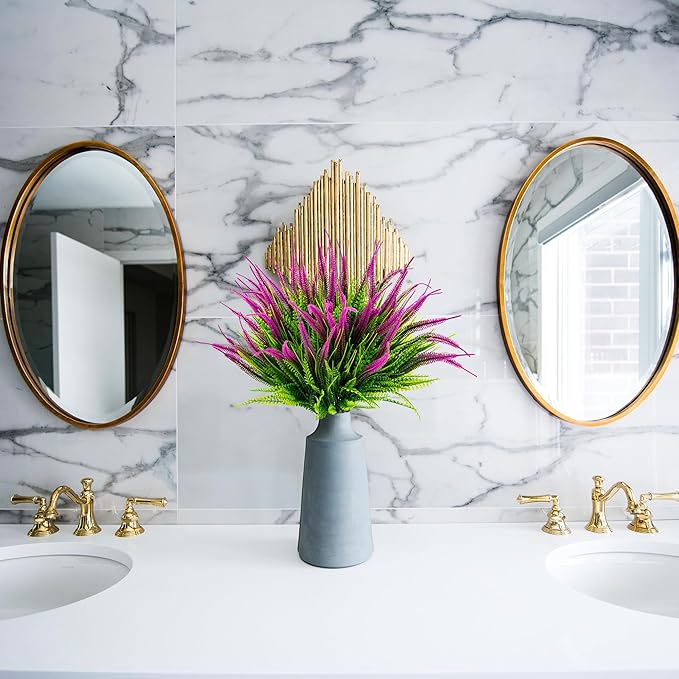 12 Bundles Outdoor Artificial Plants Flowers UV Resistant Fake Grass Plants Tropical Faux Bushes Shrubs for Home Front Porch Outside Planter Garden Landscape Décor