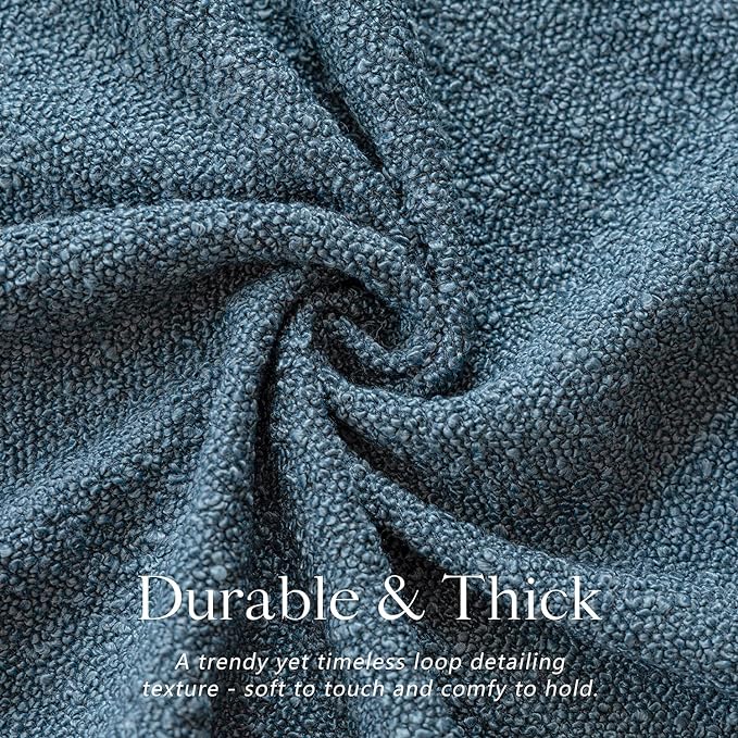Foindtower Pack of 2 Modern Textured Boucle Throw Pillow Covers Accent Solid Decorative Pillow Cases Cozy Woven Couch Cushion Case for Chair Sofa Bedroom Living Room Home Decor, 18 x 18 Inch,Blue