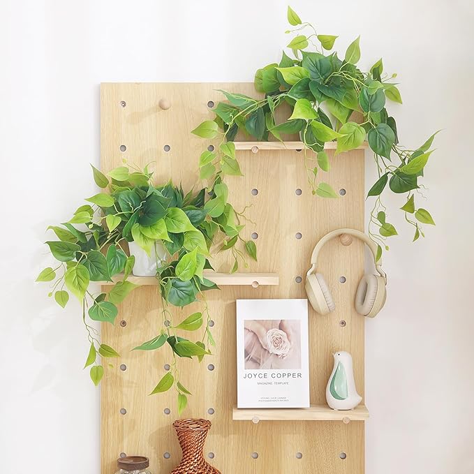 - Faux Plants Indoor - The fake plants leaf is made of high-quality PE, green leaf comes with black pot, durable and not fragile, easy to maintain. The faux pothos won't deteriorate under harsh weather and the fake hanging plants' stem and leaves are super sturdy. Ideal for adding a dash of refreshingly modern design to your home. Eco-friendly artificial plant is perfect addition to your home or office decor