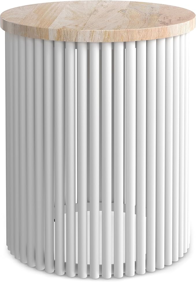 - LUXURIOUS DESIGN: Handcrafted accent table features a natural mango wood top and chic white-finished metal base, blending warmth and modern aesthetics for a sophisticated look