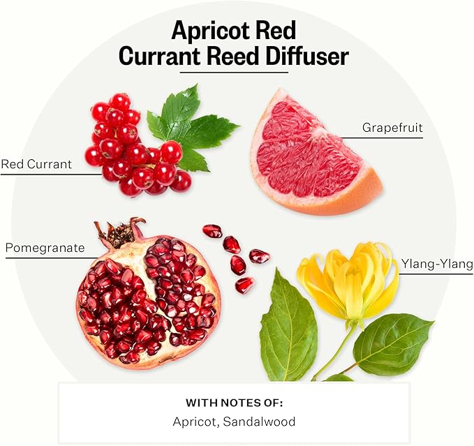 - Around-The-Clock Fragrance: Experience months of constant, captivating fragrance with the Apricot Red Currant Reed Diffuser from APOTHEKE. Our diffuser utilizes perfume grade fragrance oils and wooden reeds to disperse a delightful scent throughout any room in your home. Each reed diffuser lasts for 3-4 months. Includes one 6.7 fl.oz bottle and 10 pieces of rattan reed sticks. 3 x 5 inches (without reeds), 10 inches (with reeds).