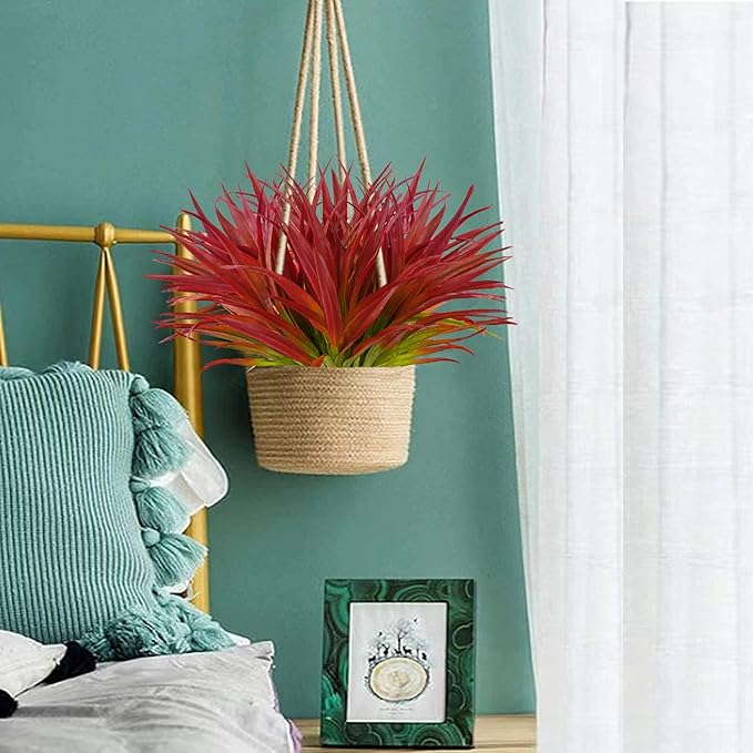 - 【UV Resistant Plants Outdoor】These Faux outdoor plants are made of high quality plastic, uv protection, weather proof. it's sturdy, attactive, and don‘t worry keep it live.“Plant” these fake tropical plant grassy on bedroom, bathroom, kitchen, balcony, window boxes, front porch, fence, patio, entrey way and yard. the uv resistant outdoor plants can hold up themselves nicely in the sun, rain or wind.